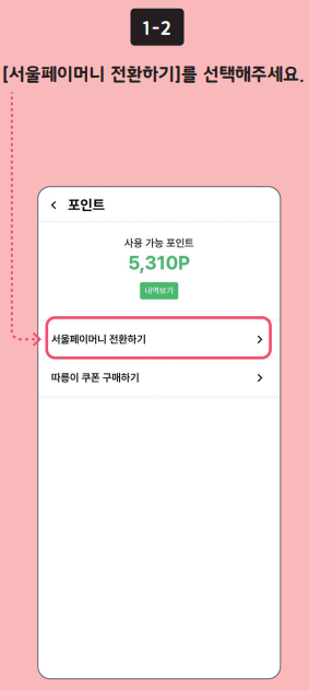 손목닥터9988 포인트 사용은 5,000P 이상이 되면 서울페이머니로 전환하거나 따릉이 쿠폰 구매하실 수 있습니다.