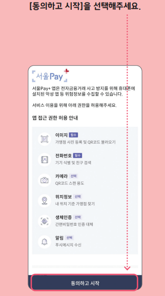 전환한 서울페이머니는 '서울페이플러스앱'을 다운받아 순서대로 동의를 하신 후 사용하시면 됩니다.