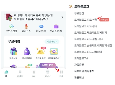 트래블로그 체크카드 국내 최초의 혁신 금융 서비스로 지정된 하나 카드 상품으로 계좌 없이 하나머니를 결제 계좌로 이용할 수 있다고 해요