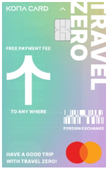 ● 코나아이가 발행하는 선불카드 브랜드인 코나카드 중 하나예요. ● 국내 신용카드 가맹점과 해외 마스터카드 가맹점에서 사용하실 수 있는 국내외 겸용 선불카드예요. ● 본인 명의의 휴대전화 번호와 은행계좌를 보유한 만 17세 이상의 대한민국 국민과 외국인 거주자(외국인 등록번 호)라면 누구나 발급받으실 수 있어요. 트래블제로카드