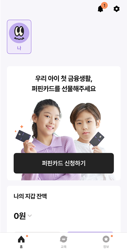아이들이 용돈을 재미있게 모으면서 자연스럽게 금융지식도 쌓고 여러가지 장점이 많은 퍼핀카드예요.